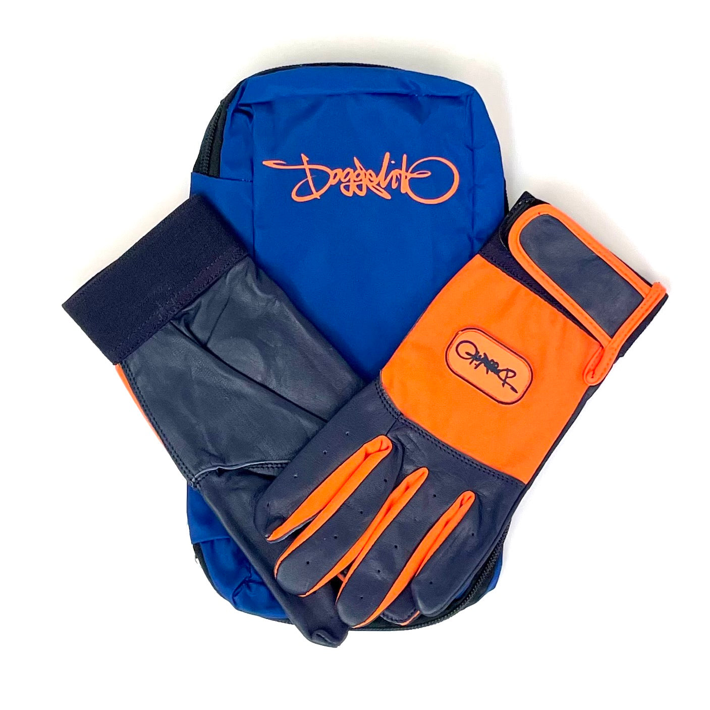 En blå/orange Battle glove i äkta skinn som är i äkta Doggelito anda.